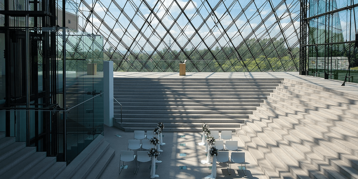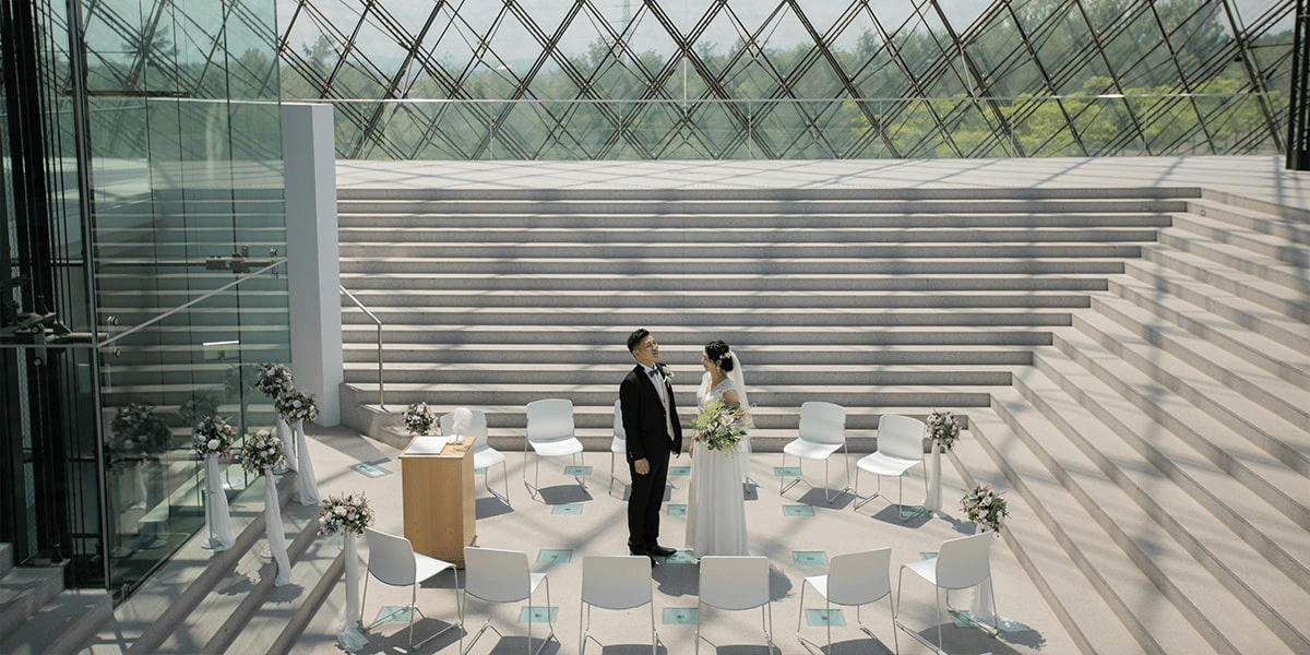 挙式会場であるガラスのピラミッド「HIDAMARI」は、