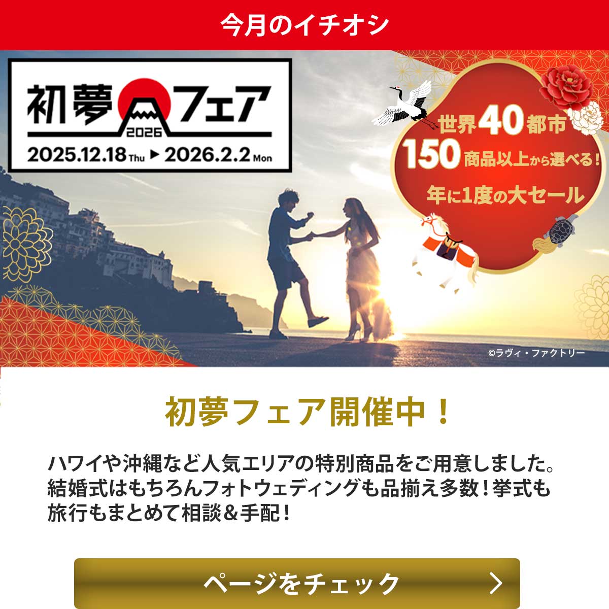 徹底的に比較できる&おふたりのベストが見つかる。ご旅行と結婚式、どちらも満足いくプランを選びたい!HISではご旅行も挙式も自由にチョイス&アレンジOK!式場の選び方や方面を決めれない方も丁寧にカウンセリングいたします!