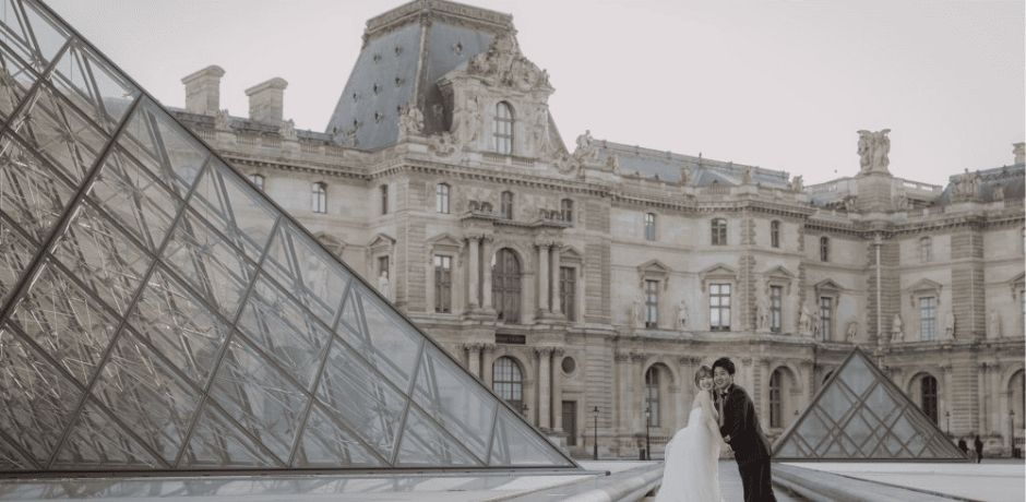 パリの象徴的な風景を背景に、ロマンチックなフォトウェディングを楽しむプラン。