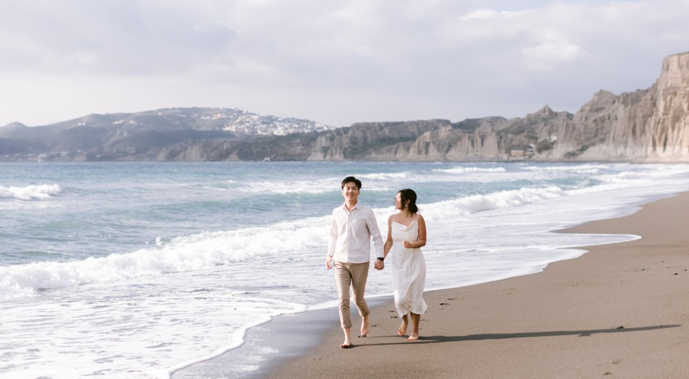 人気のイア地区に加えてサントリーニ島では珍しいビーチでの撮影(4時間撮影)