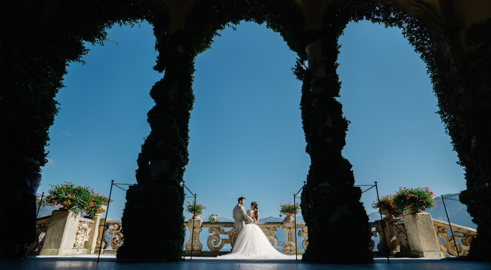 映画のロケ地にもなった美しいヴィラ「ヴィラ・デル・バルビアネッロ」で、絵画のようなウェディングフォトを。湖と庭園が織りなす絶景は、お二人の特別な一日をさらに輝かせます。