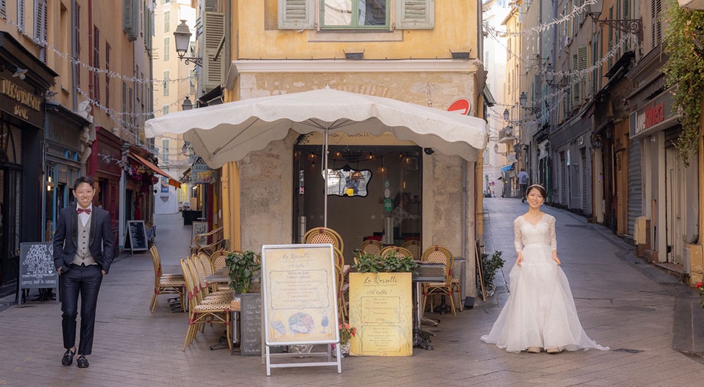 地中海リゾート「ニース」と絶景が広がる中世の石畳の村「エズ」でのフォトウェディング撮影