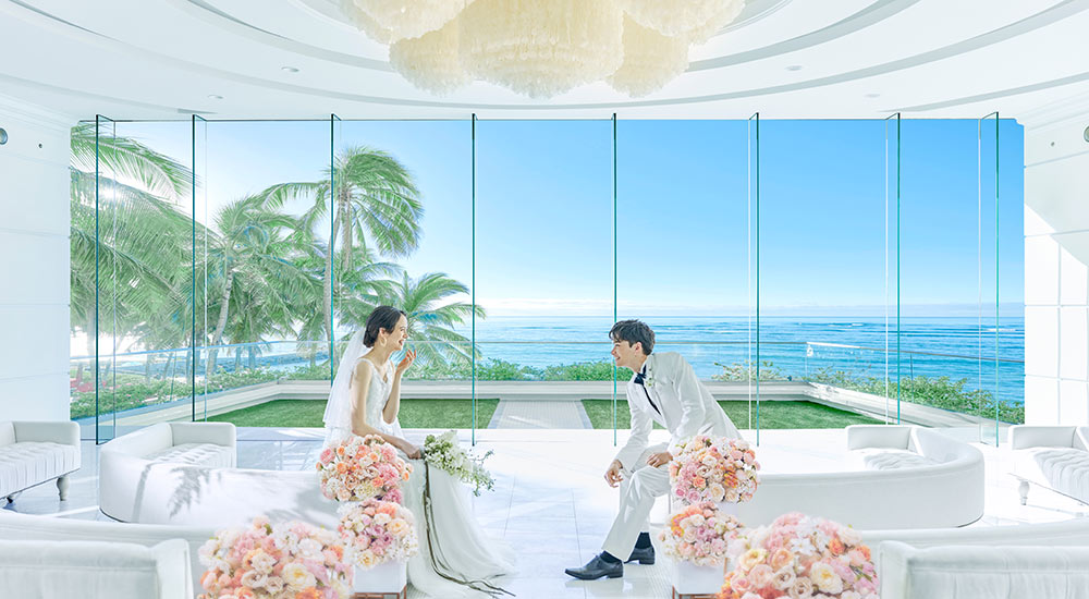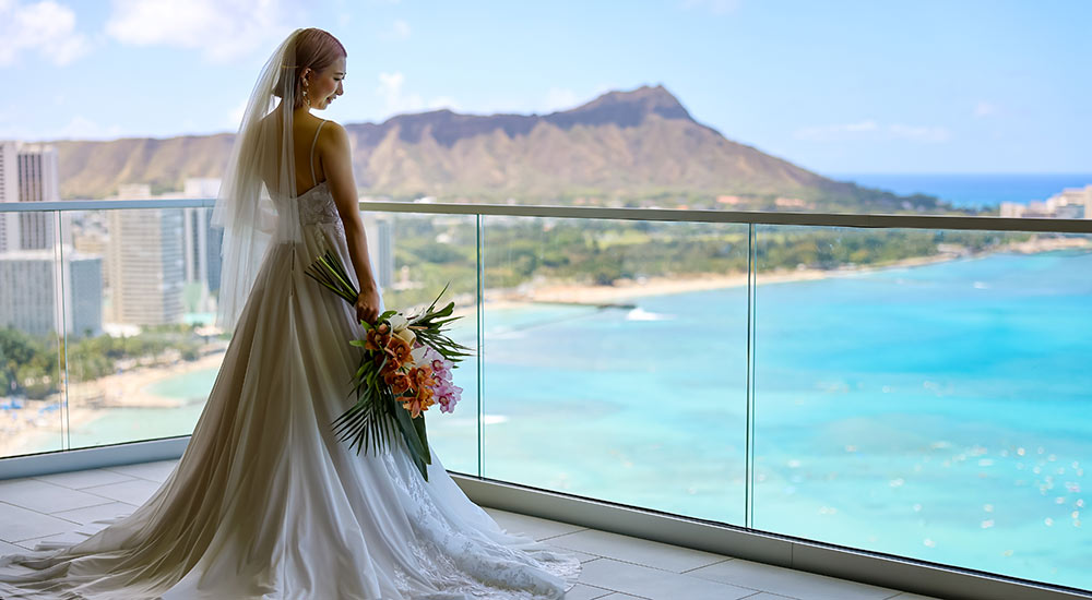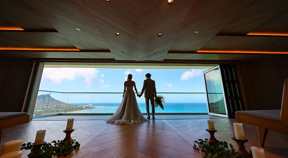 シェラトン・ワイキキ最上階にあるチャペルからのぞむ、ハワイの象徴ダイヤモンドヘッドはまさに唯一無二のロケーション。趣の異なる2つのチャペルでの撮影と、開放感あふれるアロハテラスの撮影をお楽しみいだくことができます