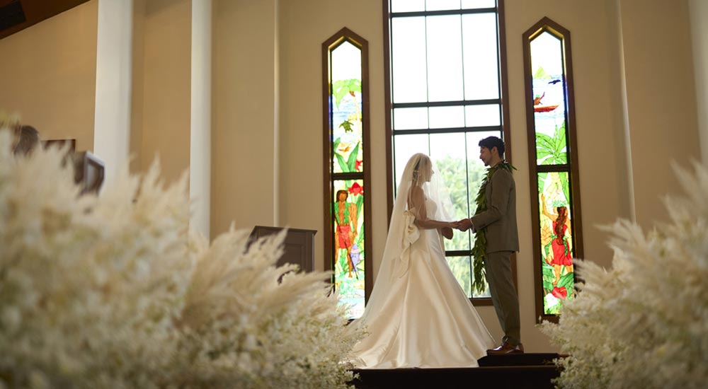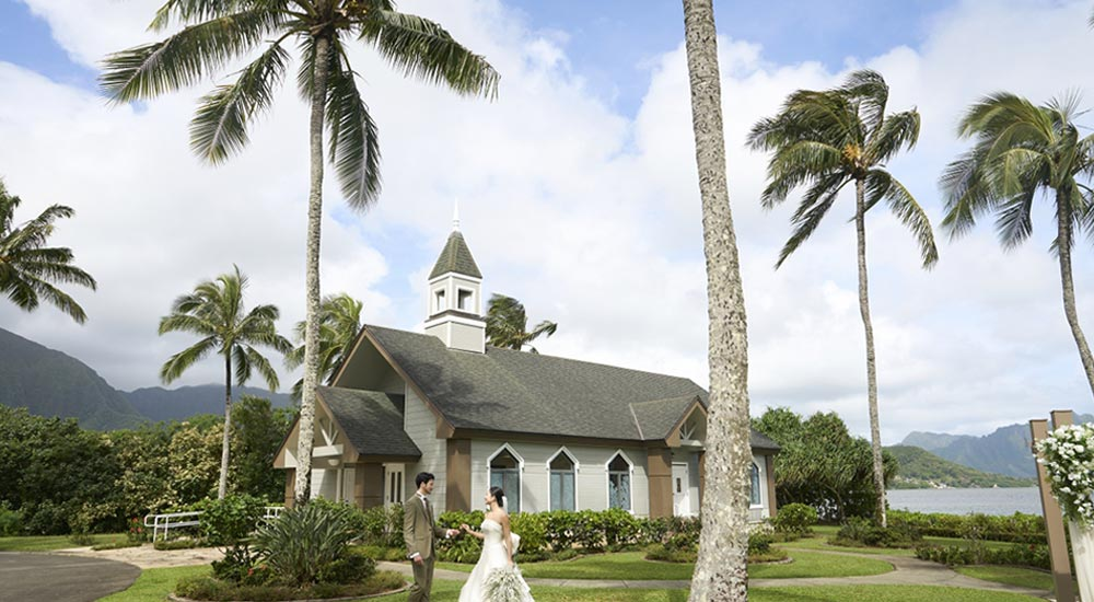 ハワイの絶景を望む地上107mの天空チャペルと、人気のビーチの両方で撮影が楽しめる内容充実プラン