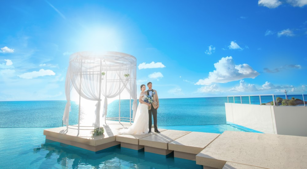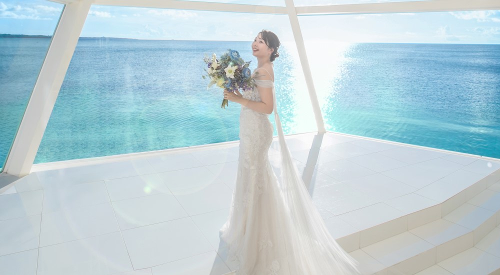 海の上に浮かぶように建てられた人気のチャペルでのフォトウェディング