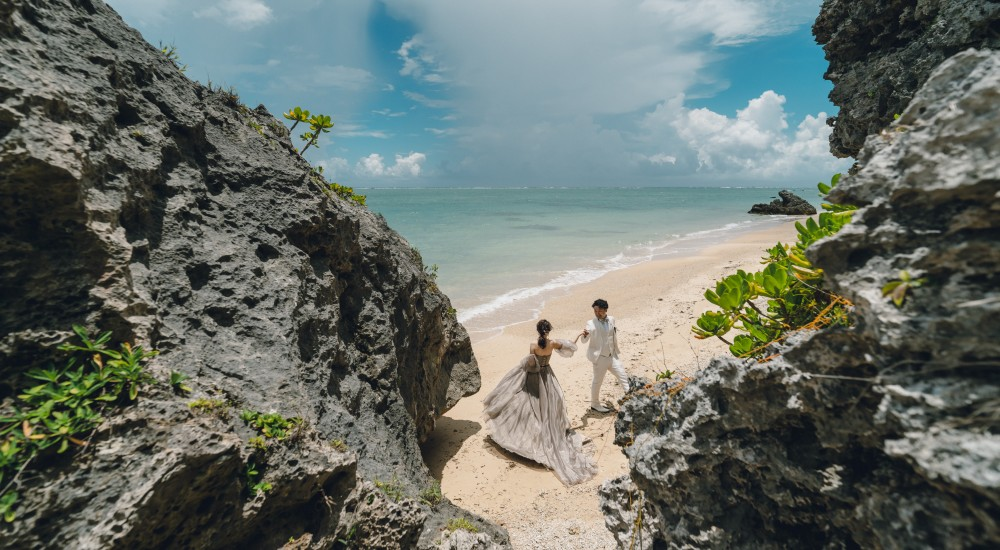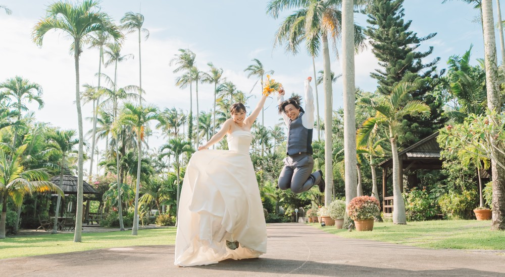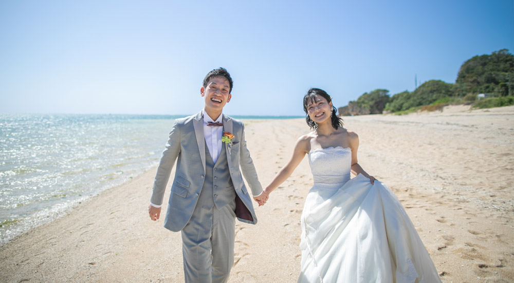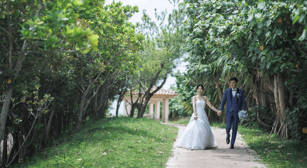 沖縄を熟知したカメラマンが雨の日も素敵な撮影をします!万が一、施行会社の判断で撮影を行えない場合は同一プラン同一内容での撮影を無料で承ります。