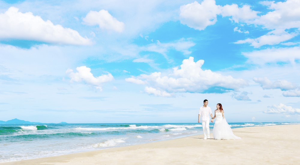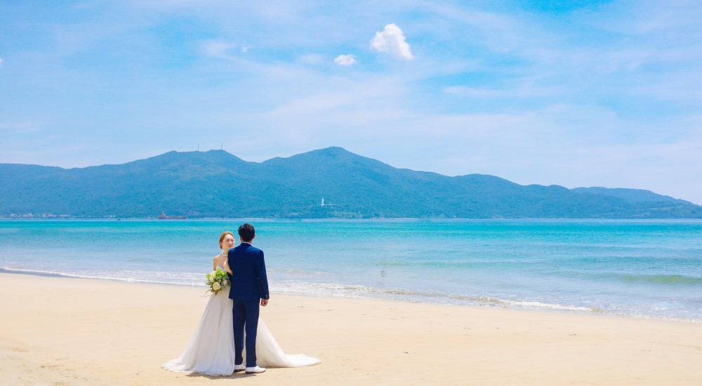 ダナンのビーチでのスタンダードな撮影プラン。衣裳は日本レンタルまたは現地レンタルを同料金でお選びいただけます!
