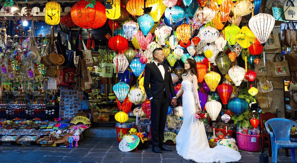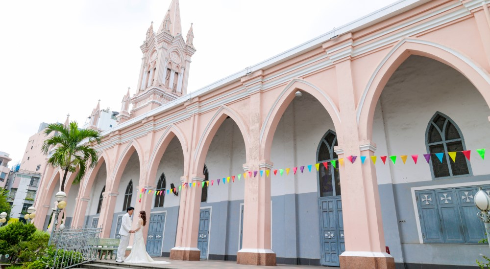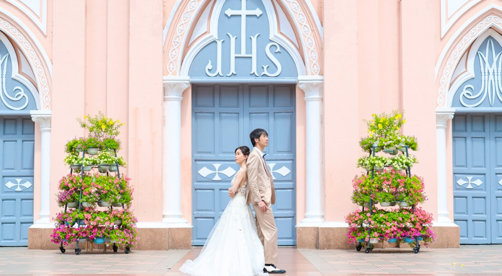 ダナン市内は市場やダナン大聖堂など、観光名所で撮影。衣裳は日本レンタルまたは現地レンタルを同料金でお選びいただけます!