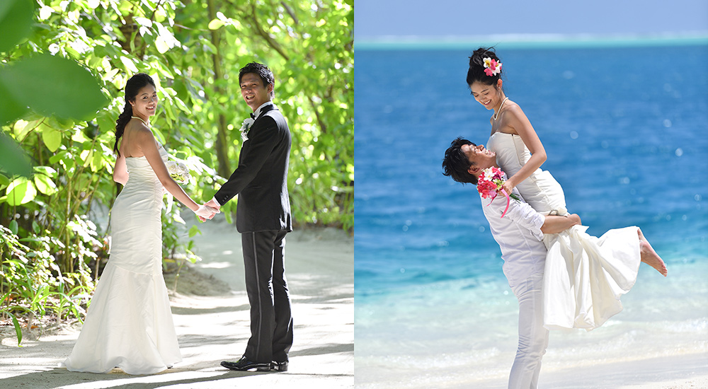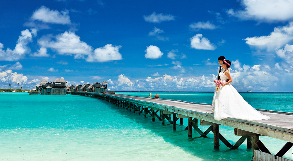 フォーシーズンズ・クダフラ、タージ・エキゾティカなどハネムーナーにも人気のリゾートで撮影が楽しめます!