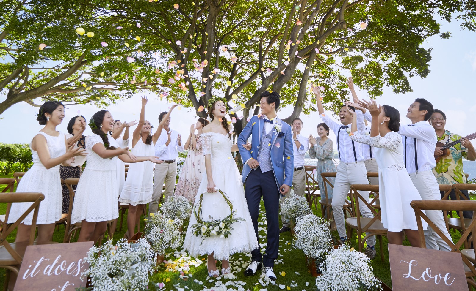 木洩れ日が降り注ぐオーシャンビューツリーウエディング
