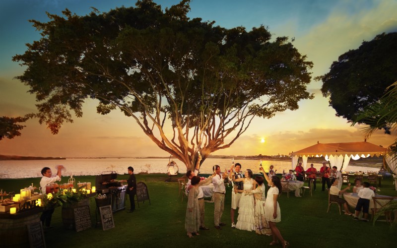 美しい海と夕景のなか、プライベートなサンセットパーティー。室内とガーデンどちらも選べます。